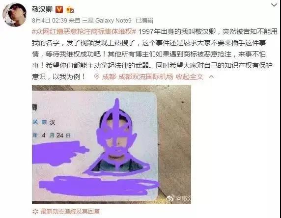 敬汉卿将此事发布后,立刻在博主圈掀起了一阵风波,大家纷纷奔走相告:你的ID被抢注商标了吗?