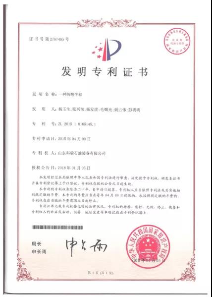 一、“一种水平井双管射流均匀注汽工艺及配套工具”发明专利,专利权人山东科瑞油田服务集团股份有限公司。
