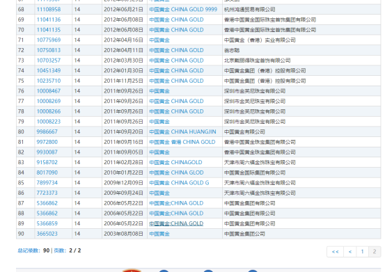 据国家知识产权局商标局官网显示:中国黄金集团有限公司已于2006年5月22日在14类申请并成功注册“中国黄金”商标目前已完成续展流程商标使用截止日期为2031年3月6日;“中国黄金珠宝”虽然也有申请,但据核查并没有申请成功的案例;不过小编注意到近期有“中国黄金”诉“中国黄金珠宝”的侵权案件。