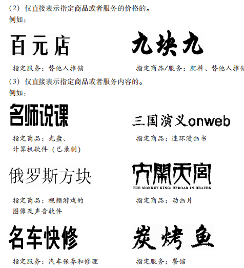 (二)仅直接表示商品的质量、主要原料、功能、用途、重量、数量及其他特点的;